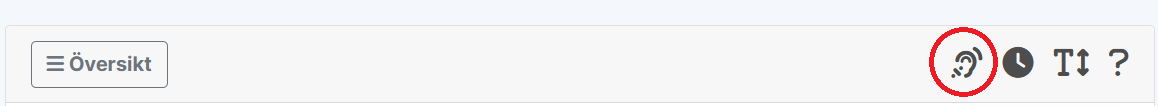När man har startat testet, kan man klicka på "örat" för att få fram uppspelningsfunktionen (Readspeaker), för att få texterna upplästa. Knappen finns längst upp till höger i testet, bredvid övriga funktionsknappar.